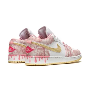 Better be quick. These Air Jordan 1 Low “Paint Drip” sneakers from Jordan are finished with arctic punch and pale vanilla trims, only here with a melty drip pattern along the heel. Think fast.