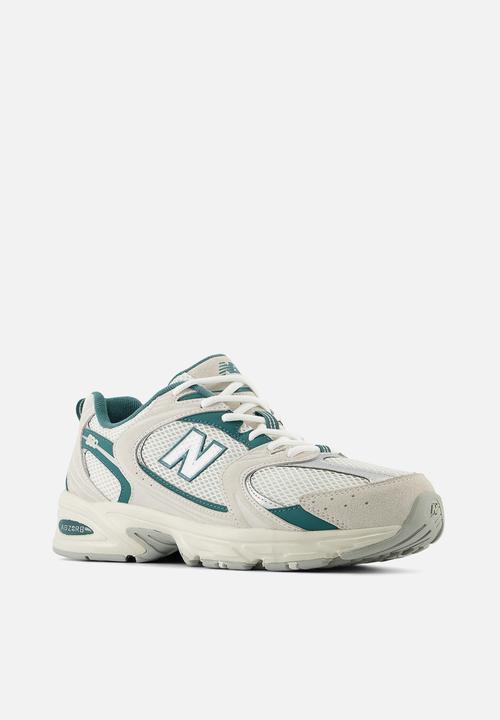 - Colorway: This specific version combines shades of white, beige (“Reflection” and “Moonbeam”), and deep green accents.